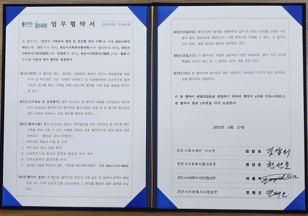 2021년 4월27일 14시 “천안형 복지구축 위원회” 협약식이 있었다.